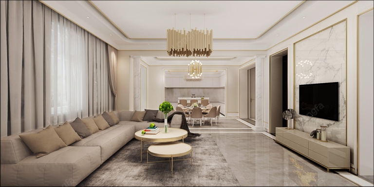 设计简洁中不失优雅,大理石台面搭配褐色皮制沙发,整个空间都充满迷人的气质。