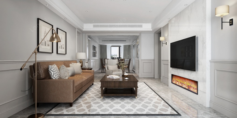 浅灰色系的地板搭配现代的沙发, 低调舒适还不失和谐。