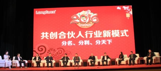 此时舞台的主背景变了上千张龙发人的笑脸,这预示着在新的一年里,龙发人的事业必将在王显董事长的领导下,以3D家居产品及“2016共创合伙人行业新模式分名、分利、分天下”的新模式为契机,在所有龙发同仁的共同努力奋斗下,再创辉煌!
