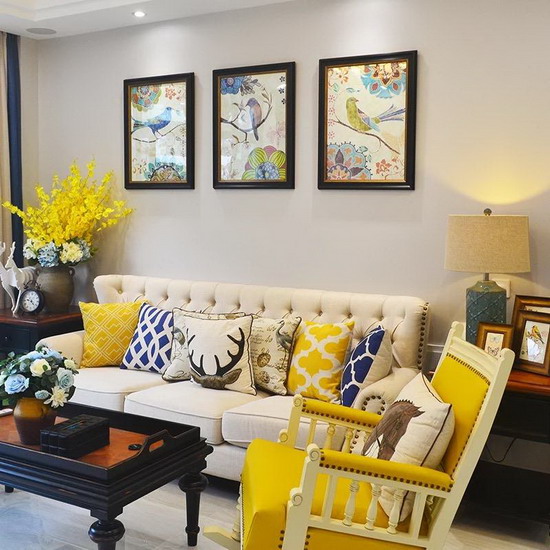 小户型的空间狭小曲折,很多人为了装饰效果,突出区域感,会在不同的区域用不同的材质与高度来加以分别,天花也往往与之呼应,这就造成了更加曲折的空间结构和衍生出许多的“走廊”,造成视觉的阻碍与空间的浪费。地面的颜色应统一成明度较强而纯度较低的色系,地面的色彩应略重于家具的色彩,这样才不会产生头重脚轻的感觉。也可以用一些马赛克、鹅卵石等做一点带有导向性的玻打线,打破沉闷的视觉效果。